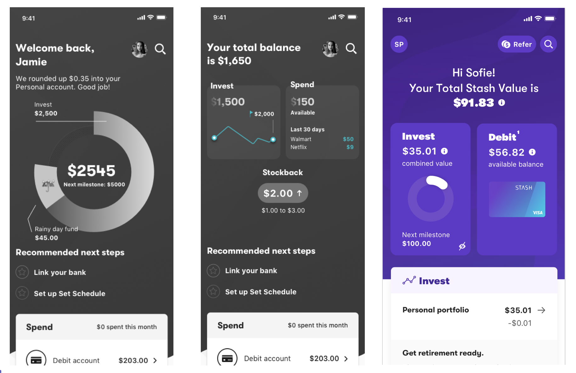 The STASH experience quickly evolved from offering solely brokerage accounts to offering retirement, custodial, and banking accounts. Originally, the Home experience was built with a single product focus. As new products were released (i.e., Cash Back, Gifting, Banking, etc), it became a stream of access points mixed with marketing messaging. We employed Lean UX and Agile methodologies to iteratively create the experience in market today partnering closely with our product and development counterparts all along this journey.